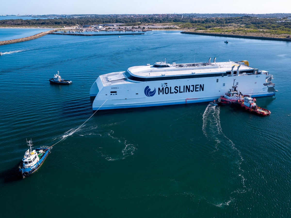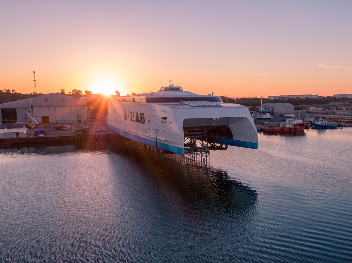 Austal bota con éxito el ferry de alta velocidad Express 4, de 109 m de eslora para su armador Molslinjen de Dinamarca. Te lo mostramos en vídeo.