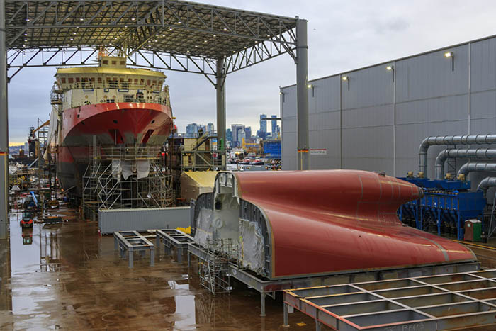 En octubre de 2011, tras un proceso de licitación abierto y competitivo, el gobierno canadiense eligió a Seaspan Shipyard (Vancouver) para reactivar la construcción naval nacional con la construcción de buques para la armada y la guardia costera no combatientes cuyo impacto en la economía del país será sólida y creará cientos de puestos de trabajo en todo el país. Seaspan Shipyards gastará millones este año en la cadena de suministro, y hasta la fecha lleva gastados más de 500 M$.