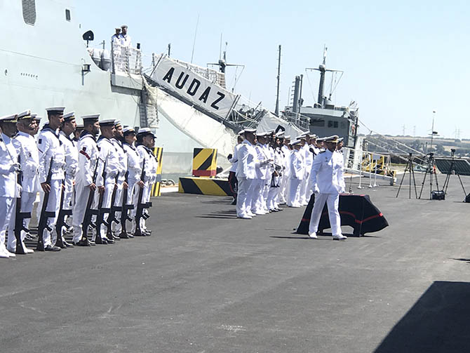 El Audaz, cuya botadura tuvo lugar el 30 de marzo del pasado año, es el primero de los dos buques de la extensión al programa BAM de la Armada Española, según la orden de ejecución firmada por el Gobierno el 21 de noviembre de 2014. La última entrega a la Armada de un buque de gran porte fue hace seis años con la entrega de la F-105 Cristobal Colón.