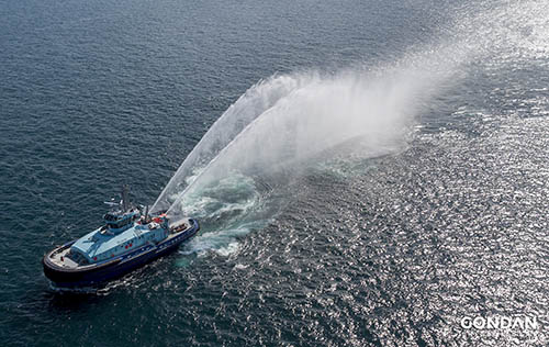 Ayer, 24 de mayo, tras completar exitosamente su programa de pruebas de mar, Gondán entregó el primer remolcador de propulsión dual construido en Europa, el Dux.