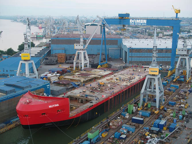 En la construcción del buque están participando los astilleros Damen Schelde Naval Shipbuilding (Países Bajos), en lo relativo a la ingeniería y gestión del proyecto, y el astillero de Galati, donde se está llevando a cabo la construcción y el equipamiento.