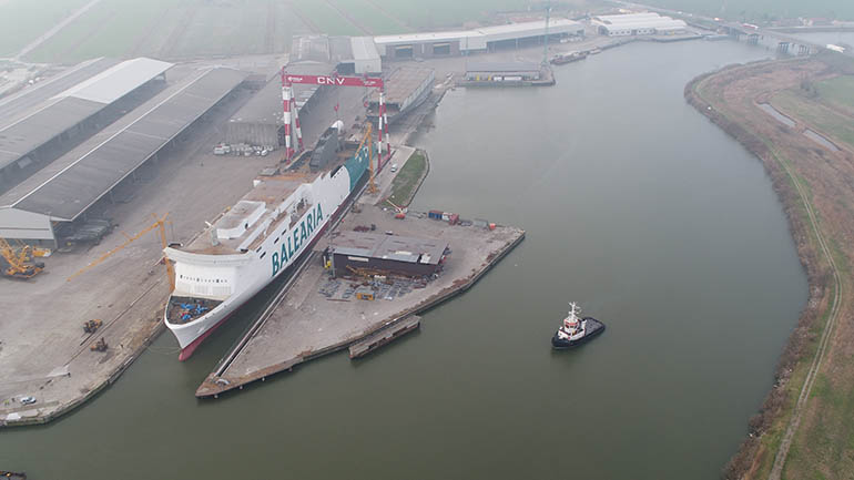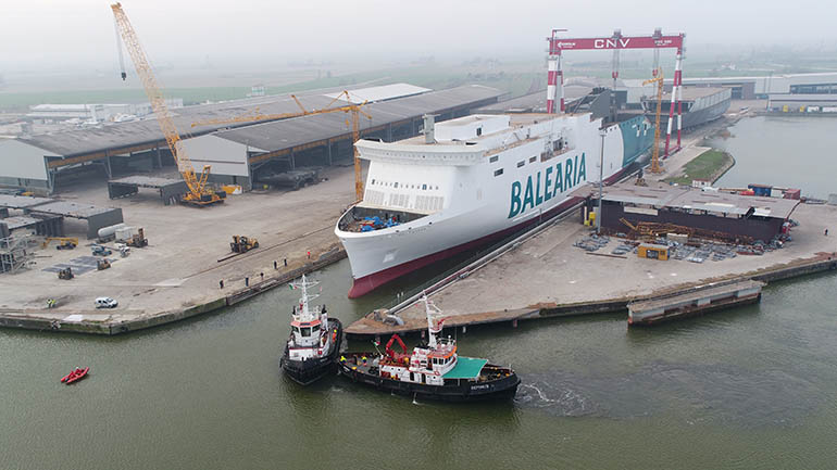 La naviera Baleària llevó a cabo el pasado 29 de marzo de 2018 la flotadura del buque Hypatia de Alejandría, el primero de los dos ferries con generadores propulsados por gas natural que operarán en el Mediterráneo y que se están construyendo en el astillero italiano Cantiere Navale Visentini.