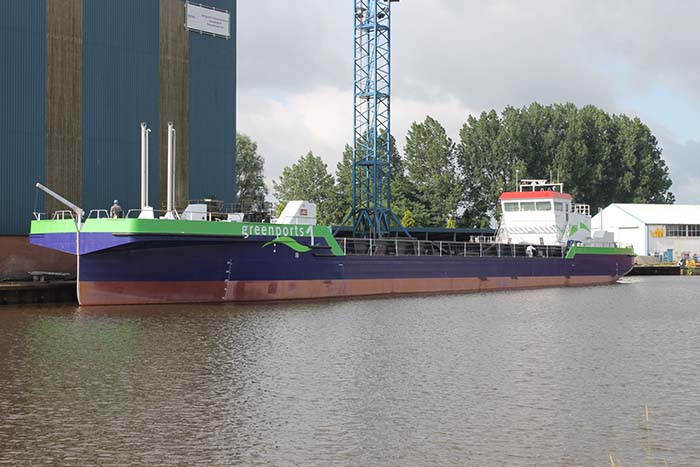 El gánguil de abertura central Greenports 1 propulsado con gas natural licuado (GNL) dentro de poco se unirá a la flota de bremenports tras completar las pruebas de mar que lleva a cabo el astillero constructor SCHN (Shipyard Constructions Hoogezand Nieuwbouw), en Foxhol (Países Bajos).
