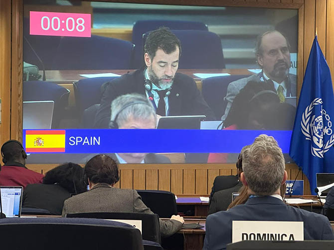 El Consejo de la OMI condena los ataques contra buques mercantes e insta a la coordinación internacional para salvaguardar el transporte marítimo civil, durante una sesión extraordinaria celebrada en Londres.