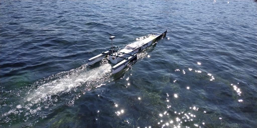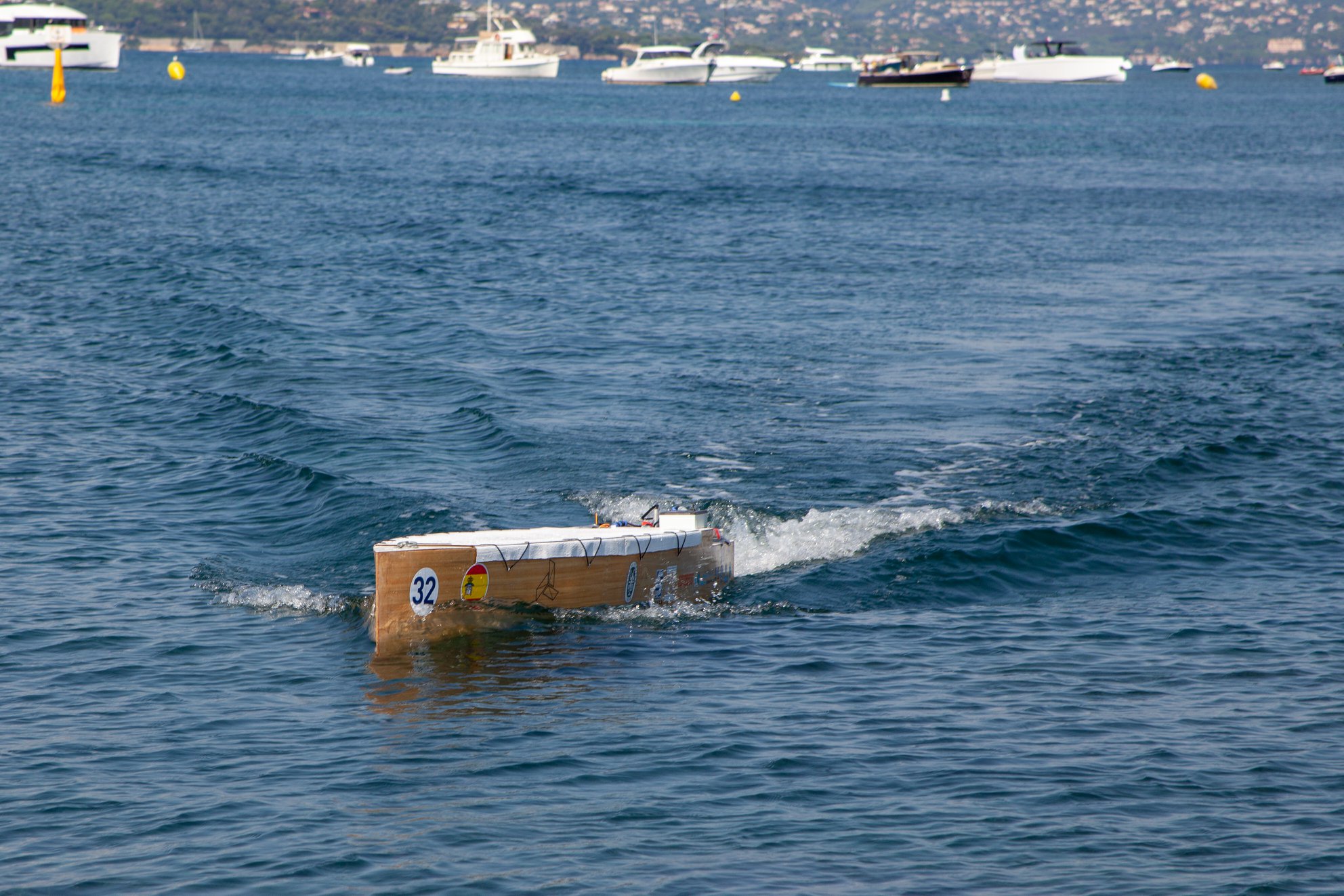 aproximadamente 3,1 m de eslora. Para la prueba de Heavyweight se mejoró la embarcación de 3,3 m con la que se participó en la pasada edición de 2017. En esta última, para cumplir con el requisito de dimensiones, se optó por emplear la diagonal tridimensional de la caja anteriormente mencionada. Ambas embarcaciones iban equipadas con el motor de 1,4 kW proporcionado por la organización.