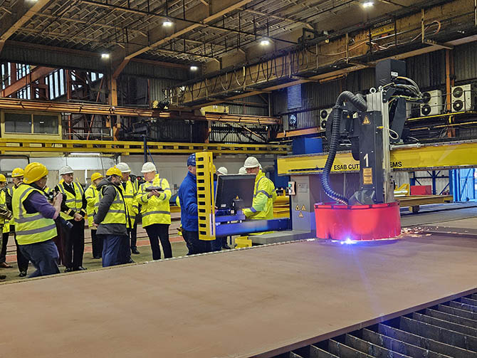 En Appledore, la inversión incluye un sistema de corte por plasma tres veces más rápido –-utilizado hoy para cortar el acero–, la automatización de las grúas (36 unidades) y otras mejoras para optimizar la fabricación y los tiempos de entrega.