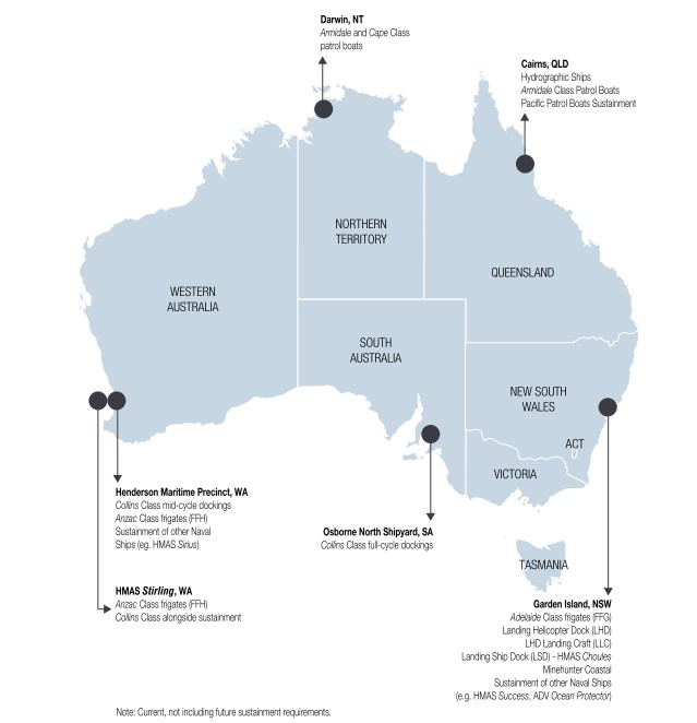 Invertirán 1.300 millones de dólares australianos (algo más de 868 M€) en los astilleros nacionales del sur y oeste de Australia. Se invertirán 535 millones de dórales en mejorar las instalaciones del astillero de Osborne. Otros 100 millones de dólares estarán destinados al mantenimiento y actualización de la infraestructura industrial de la zona de Australia occidental entre 2017 y 2020.