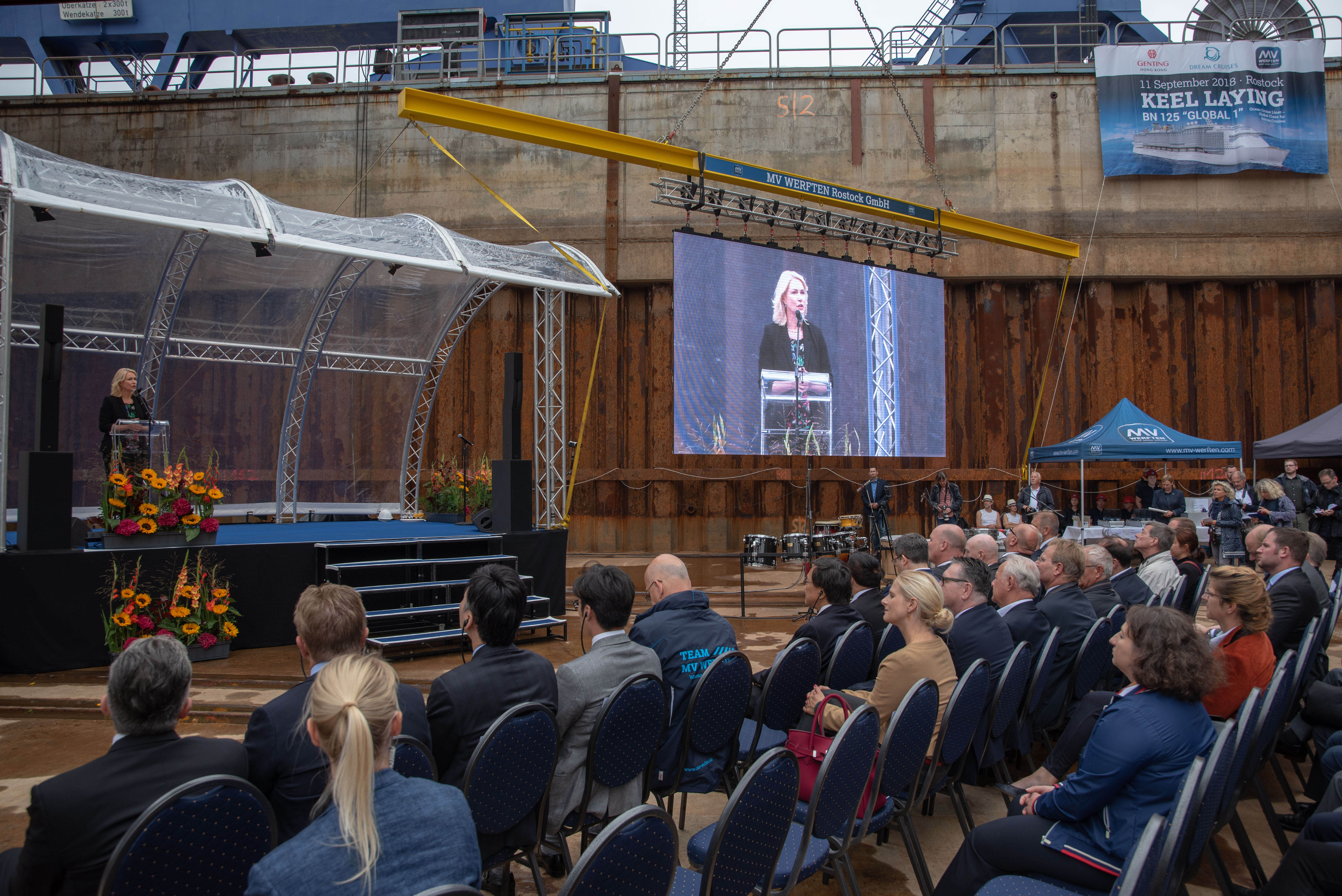 A la ceremonia asistieron la primera ministra Manuela Schwesig, el ministro de economía Harry Glowe, el presidente del grupo Dream Cruises, Colin Au, el presidente y CEO de Genting Hong Kongs Tan Sri Kok Thay y el CEO de MW-Werft Peter Fetten.