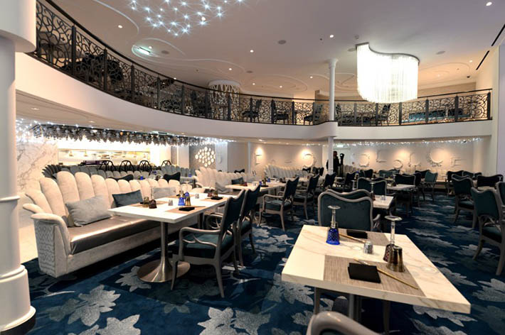 El comedor principal de 3 niveles, denominado Quantum, está diseñado como tres restaurantes independientes ubicados en diferentes cubiertas: American Icon Grill (Cubierta 3), The Grand (Cubierta 4) y The Chic (Cubierta 5). También dispone de más restaurantes: Quantum, Sabor Modern Mexican, Wonderland Imaginative Cuisine o el Coastal Kitchen. Entre las novedades presentadas por la naviera destaca el nuevo restaurante especializado en mariscos y delicias del mar Hooked Seafood, y el bar deportivo Playmakers Sports Bar & Arcade.