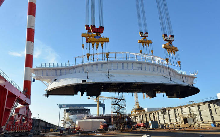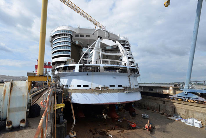 El astillero STX France en Saint-Nazaire ha entregado ya el nuevo buque de crucero más grande del mundo, el Symphony of the Seas a su compañía, Royal Caribbean. El buque fue encargado el 9 de mayo de 2014. El corte de acero comenzó el 3 de febrero de 2015. El 2 de octubre de 2016 se puso la quilla y el 9 de junio de 2017 tuvo lugar su flotadura.